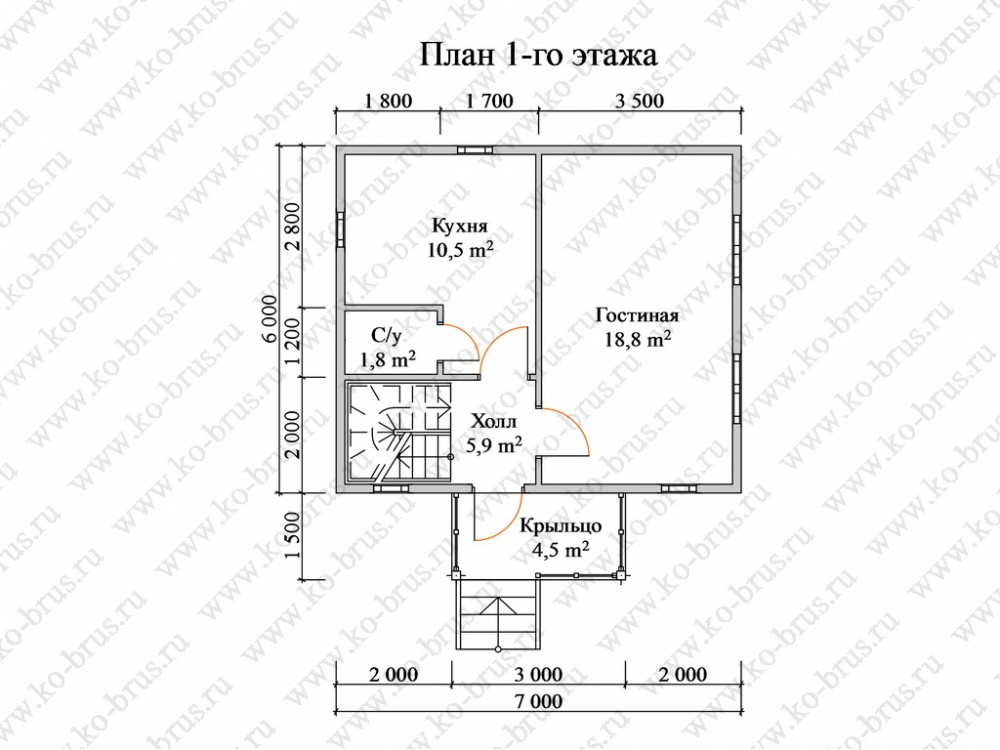 Проект поставляется в полной комплектации «под крышу»: сруб, стропильная система, черновые полы, проёмы под окна и двери, доставка и сборка на участке уже включены. Вся наружная часть дома проходит антисептическую обработку, а фундамент защищается двойным слоем гидроизоляции — всё это продлевает срок службы дома и повышает его надёжность.