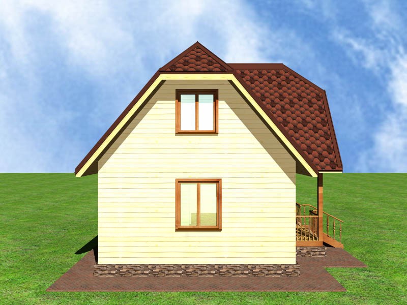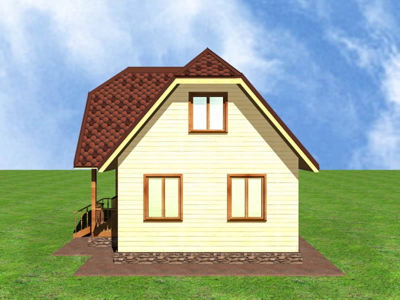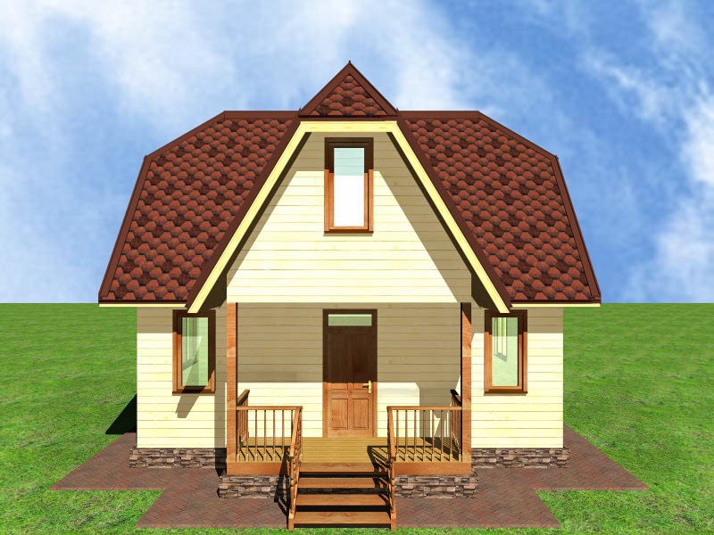 Мансардный этаж оригинальной формы добавляет проекту характера и делает дом визуально привлекательным. Он гармонично смотрится в любом ландшафте и при этом не требует большого участка или сложного строительства — это один из самых удачных вариантов дачного дома по соотношению «цена–качество».