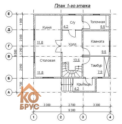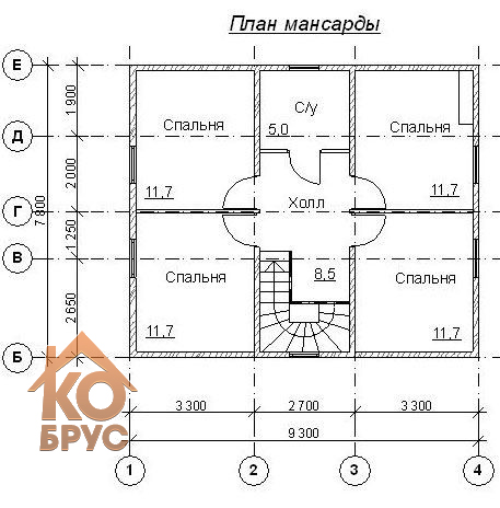Проект ДБ-47 представляет собой двухэтажный дом из бруса размером 9×9 метров. Конструкция дома выполнена из бруса 150×150 мм для основных стен и 100×150 мм для внутренних перегородок первого этажа, что обеспечивает прочность и надежность строения.