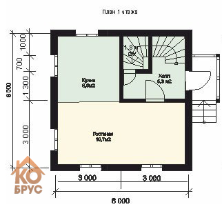 Проект ДБ-30 представляет собой двухэтажный дом из бруса размером 6×6 метров, спроектированный для рационального использования жилого пространства. Первый этаж обеспечивает удобные общие зоны, второй этаж позволяет создать отдельные помещения для отдыха или работы.