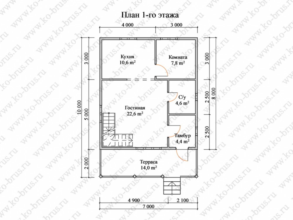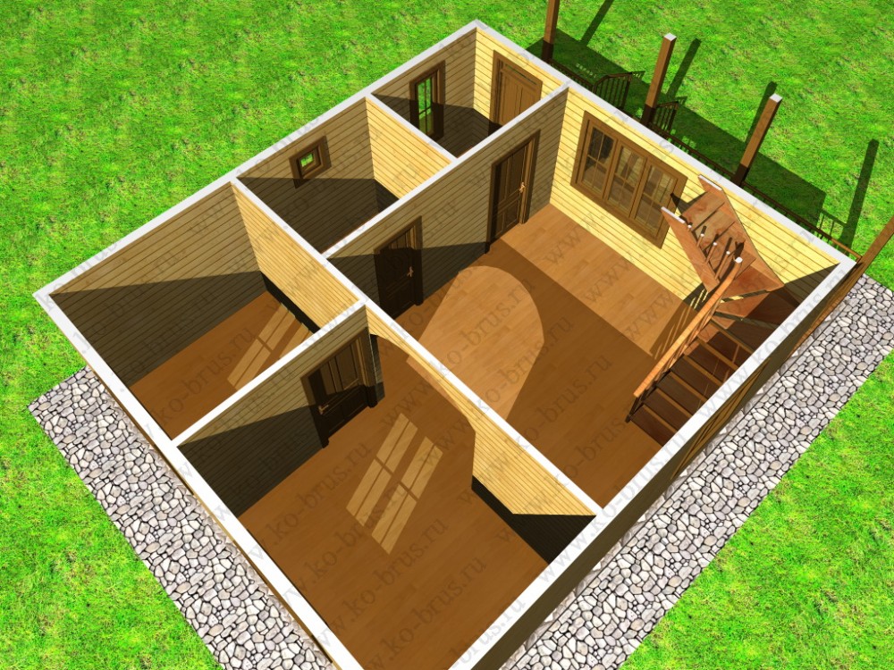 Проект ДБ-24 представляет собой двухэтажный дом из бруса размером 8×7 метров с террасой, спроектированный для удобной организации жилого пространства. Первый этаж обеспечивает просторные и светлые общие зоны, а второй этаж позволяет создать отдельные помещения для отдыха или работы. Наличие террасы расширяет пространство для отдыха на свежем воздухе.