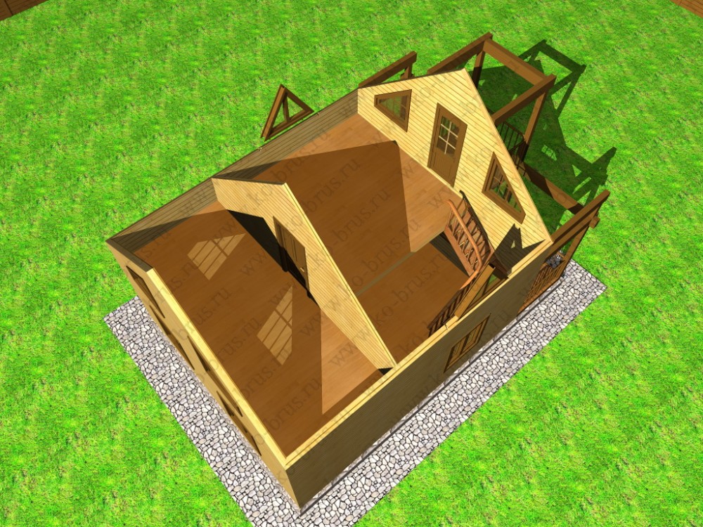 Конструкция дома выполнена из качественного бруса с антисептической обработкой и гидроизоляцией, что обеспечивает долговечность и защиту от влаги. Строительство организовано с удобством для заказчика: материалы доставляются на участок, разгружаются и собираются до крыши.