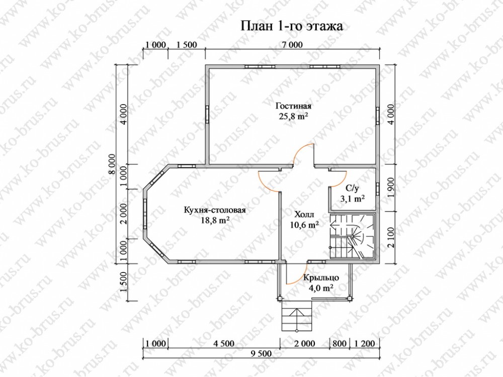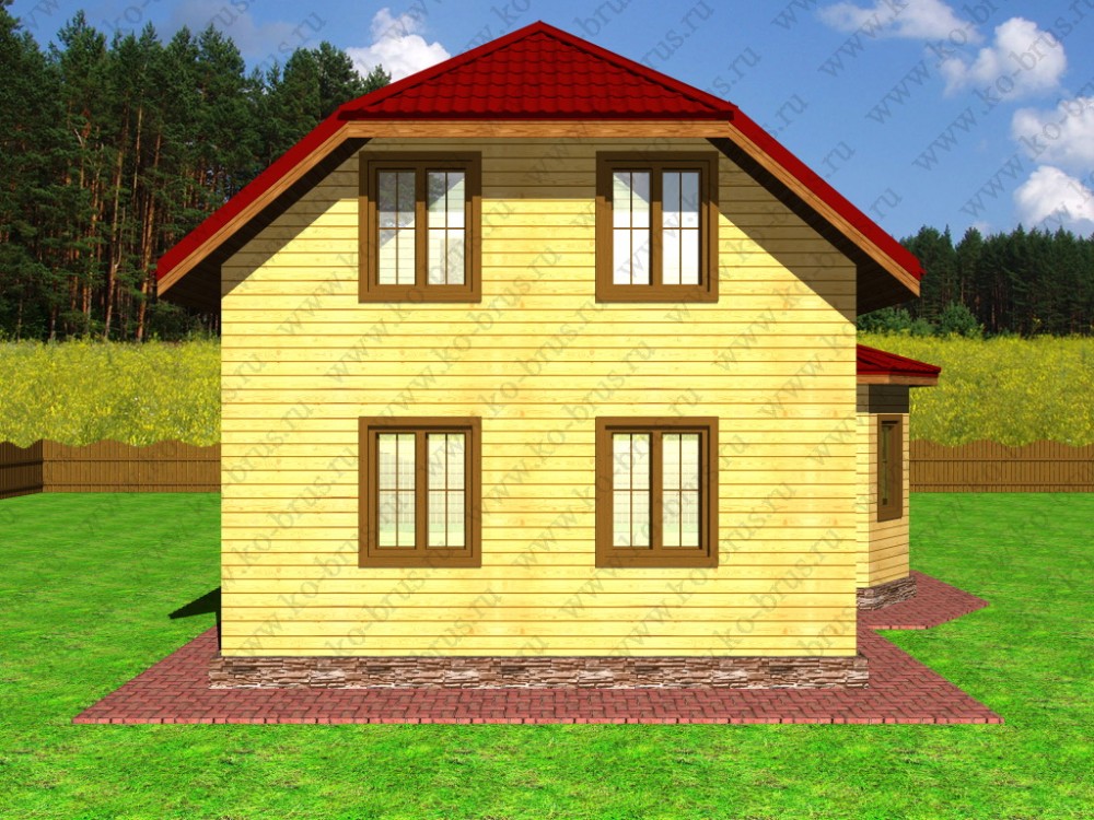 Проект ДБ-22 представляет собой двухэтажный дом из бруса размером 9,5×7 метров, спроектированный для рационального использования жилого пространства. Первый этаж обеспечивает удобные общие зоны с достаточным естественным освещением, второй этаж позволяет организовать отдельные помещения для отдыха или работы.