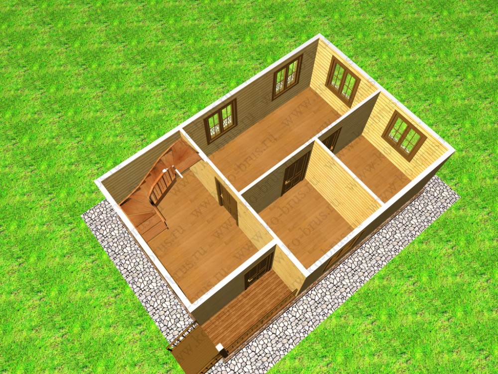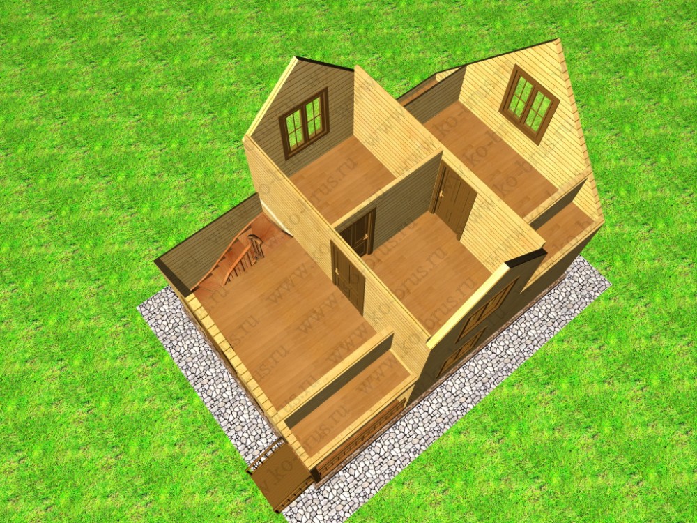 Проект ДБ-20 представляет собой двухэтажный дом из бруса размером 9×6 метров, спроектированный для комфортного распределения жилого пространства. Первый этаж обеспечивает светлые и удобные общие зоны, второй этаж позволяет организовать отдельные помещения для отдыха или работы.