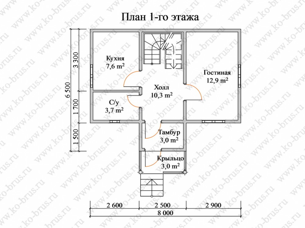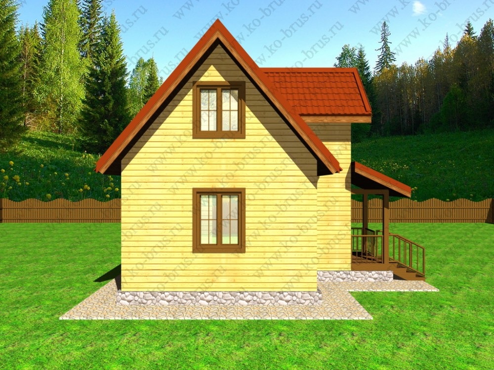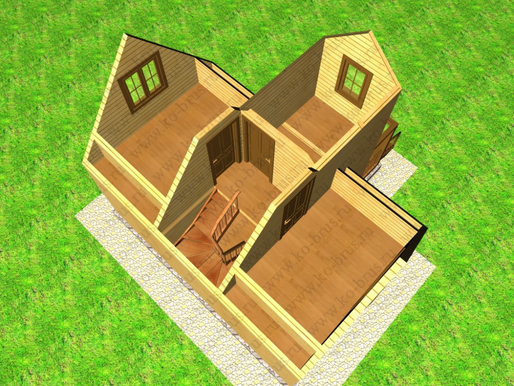 Проект ДБ-19 представляет собой двухэтажный дом из бруса размером 8×6,5 метров, спроектированный для удобной и рациональной организации пространства. Первый этаж обеспечивает комфортное размещение общих зон, второй этаж позволяет создать отдельные помещения для отдыха или работы.