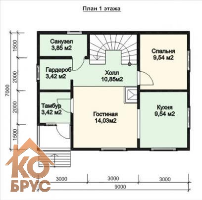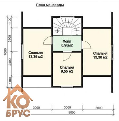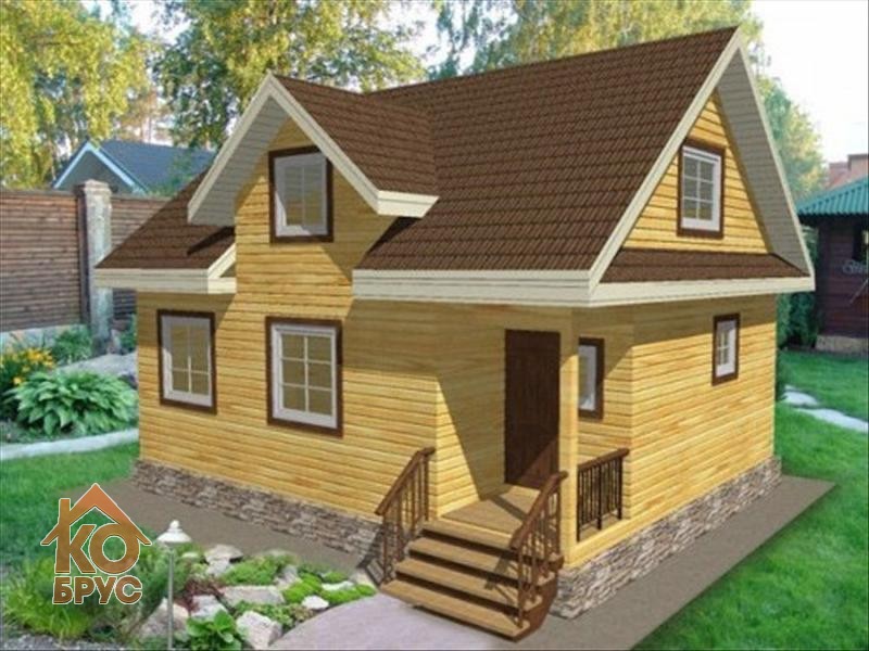 Проект ДБ-57 представляет собой дом из бруса размером 7×9 метров, установленный на свайном фундаменте. Основные стены первого этажа выполнены из бруса 150×150 мм. Высота этажа — 3 метра, в чистоте 2,70 м. Мансардный уровень имеет высоту 2,50 м. Перегородки обоих этажей выполняются из бруса 100×150 мм.