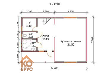 Проект ДБ-38 представляет собой двухэтажный дом из бруса размером 7×10 метров, спроектированный для рационального использования жилого пространства. Первый этаж обеспечивает удобные и светлые общие зоны, второй этаж позволяет создать отдельные помещения для отдыха или работы.