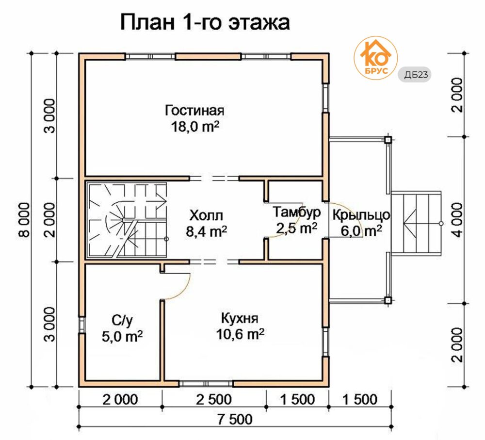 Дом из проф бруса 6×8 м с Монсардой — компактное и функциональное решение для семьи, ценящей комфорт и уют. Тёплая площадь 75,7 м² включает 2 спальни, гостиную, кухню, дополнительную комнату, два холла, санузел и тамбур, обеспечивая удобное зонирование для всех членов семьи. Второй свет добавляет ощущение простора, а крыльцо и собственная баня делают дом особенно комфортным для отдыха. Двускатная крыша и качественный брус гарантируют тепло и долговечность, делая проект практичным вариантом для круглогодичного проживания или дачи.