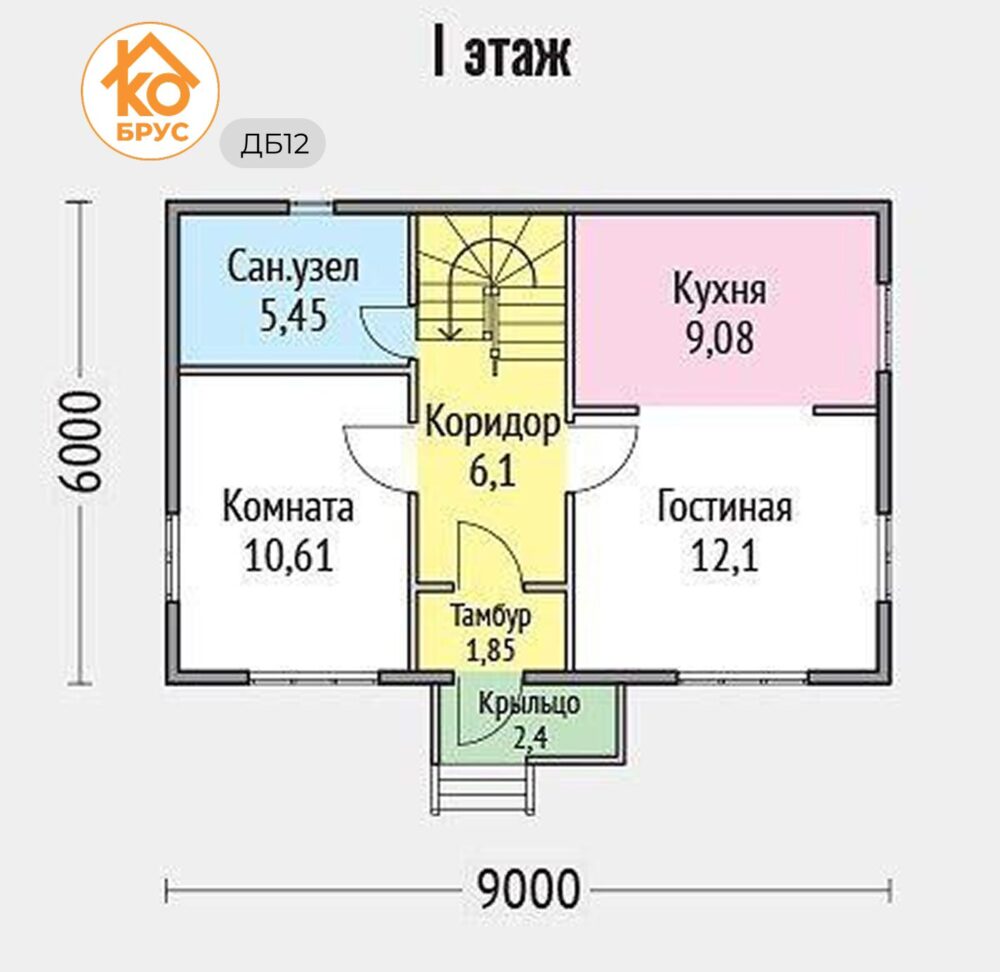 Компактный и уютный дом из бруса 6×9 м с мансардой идеально подойдёт для небольшой семьи или дачного проживания. Тёплая площадь 86,1 м² включает 4 комнаты, гостиную, кухню, холл, коридор и тамбур, обеспечивая комфортное зонирование и удобство для повседневной жизни. Высота потолков 2,60–2,7 м создаёт ощущение простора, а крыльцо добавляет удобный вход в дом. Двускатная крыша и качественный брус гарантируют долговечность и тепло, делая этот проект практичным и стильным решением для круглогодичного или сезонного проживания за городом.