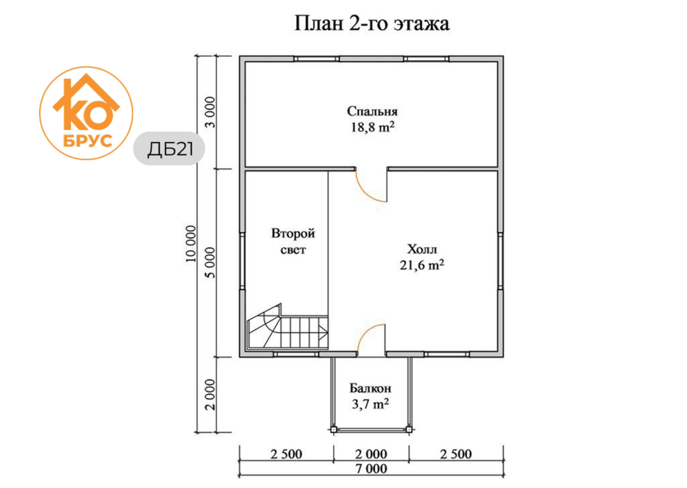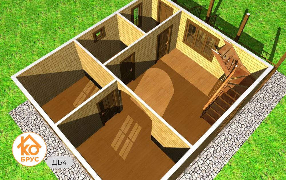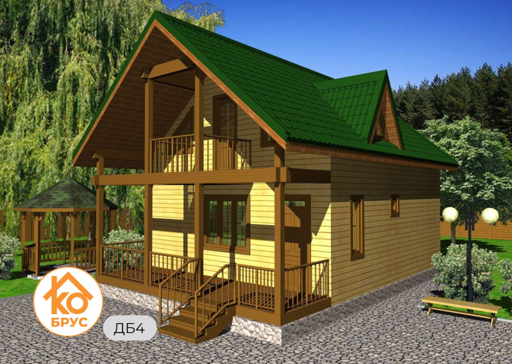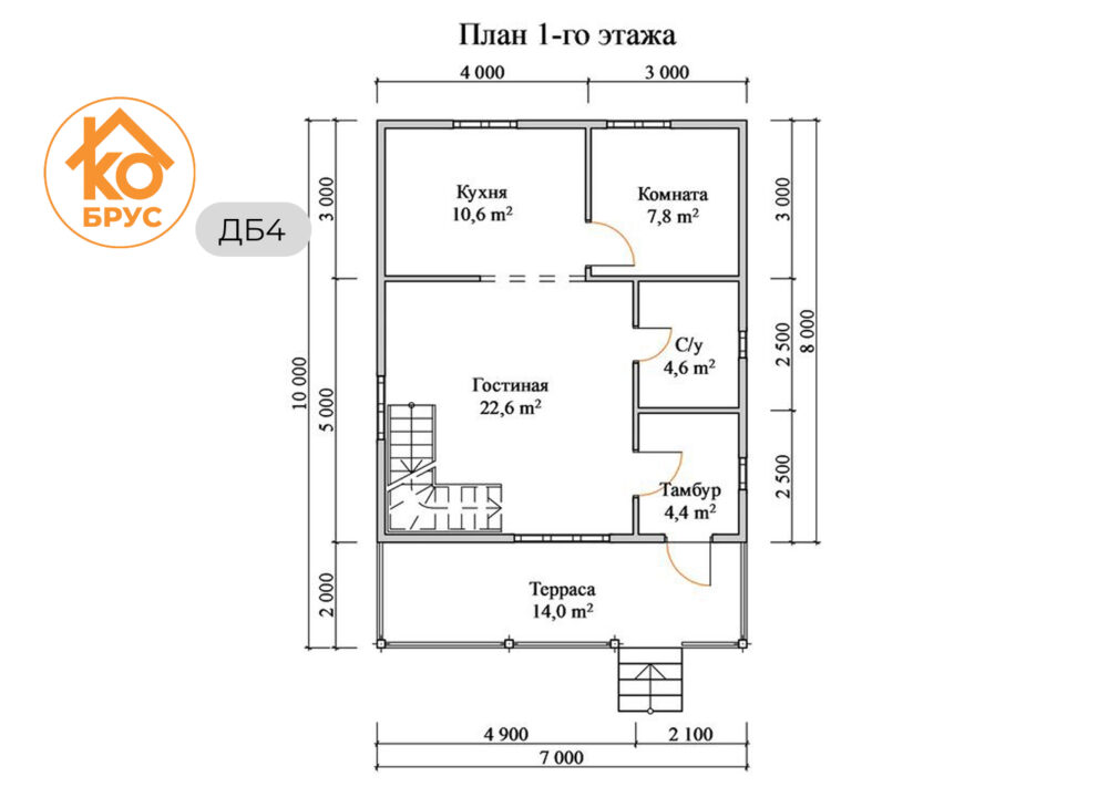 Дом из бруса 7×10 м с полутораэтажные сочетает компактность и простор благодаря тёплой площади 90,4 м² и особенностям планировки. Внутри расположены кухня, гостиная, спальня, дополнительная комната, холл, тамбур и санузел, что обеспечивает комфортное проживание для семьи. Второй свет визуально расширяет пространство, а терраса площадью 14 м² позволяет отдыхать на свежем воздухе. Двускатная крыша и качественный брус обеспечивают долговечность, тепло и уют, делая этот проект идеальным решением для круглогодичного проживания за городом.